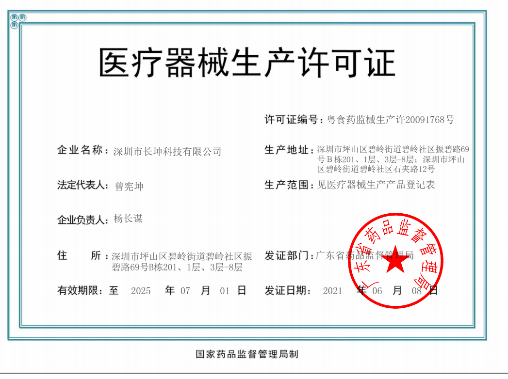 中文版|ENGLISH 服務熱線:0755-29100487 歡迎來到深圳市長坤科技有限公司官網!      粵深食藥監(jiān)械經營備20151166號      粵食藥監(jiān)械生產許20091768號